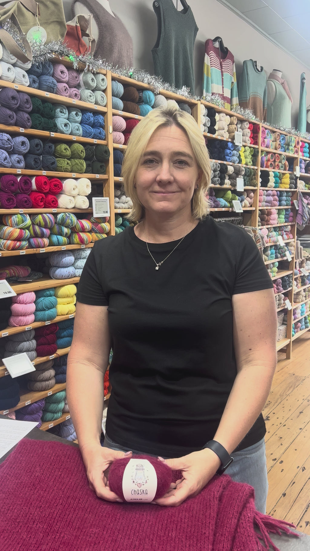 All the exact yarn you need: 10 balls of luxurious Chaska Alpaca Air in your chosen shade — no guesswork required.